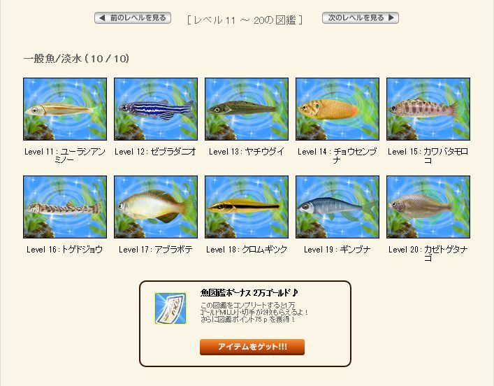 お魚図鑑1つクリアーおめでとん♪