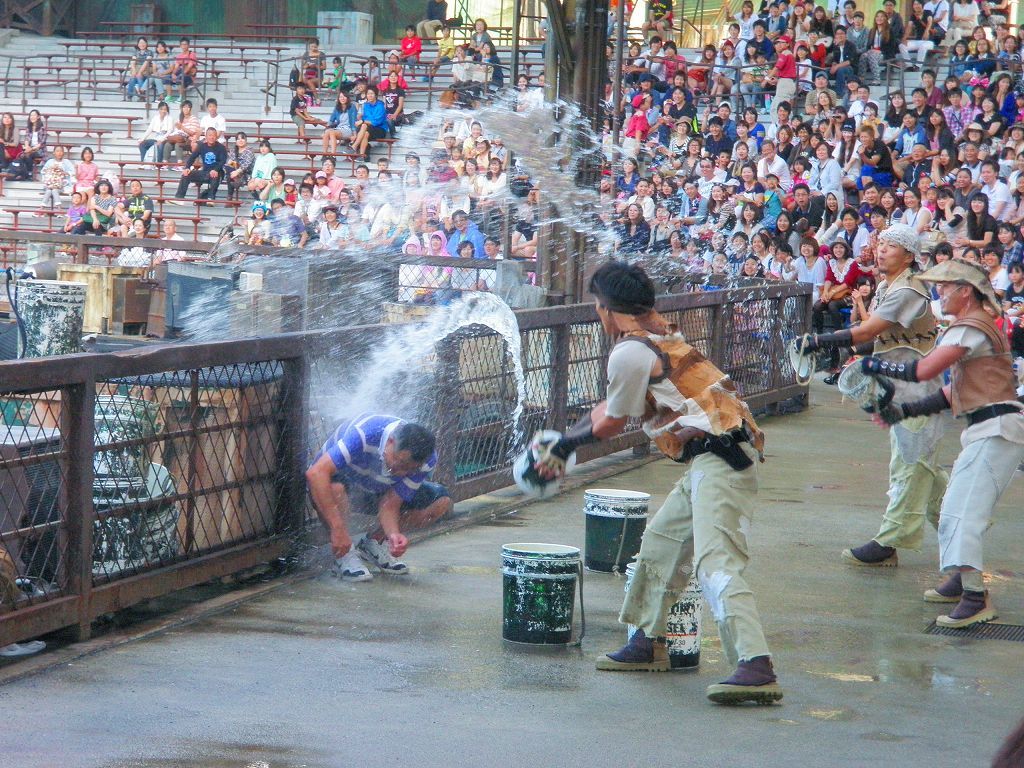 秋になって、10月も半ば迄は夏日も多く水も気にならなかったけど・・・ ここ数日で一気に寒さが増し、ウォータワールドは遠慮気味になる気候になってきたd(-∀-。)ネッ 少し暑い日は、10月といえど容赦なく水掛の洗礼は行われますが、冷え込んだ時は特別処置も検討されるし、水浴び希望者も激減するからターゲットは最前列に絞られるんだよ Ψ( ̄∀ ̄)Ψ