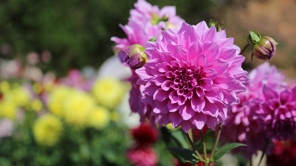 広大な敷地で、春はチューリップ、夏はヒマワリ、秋はダリアが