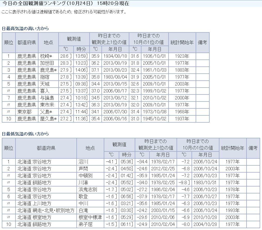 最高気温鹿児島に東京が紛れ込んでる|ョω・´)ジーw