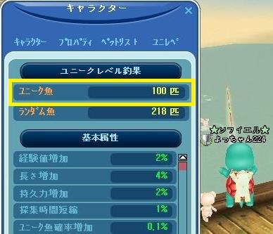 ユニーク魚100匹達成してました^^v