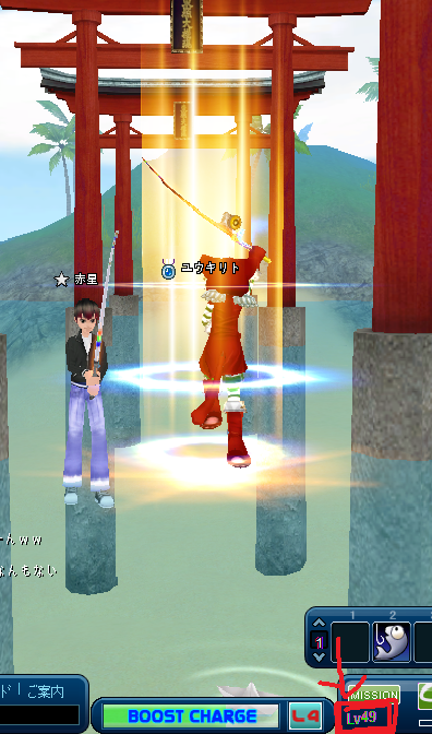 レベル49にUPです。横にいるのはビギになってくれている赤星くんです。