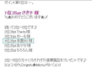 イベ王総合4位ヽ(〃・ω・)ノ☆゚’・:*☆オメデト♪