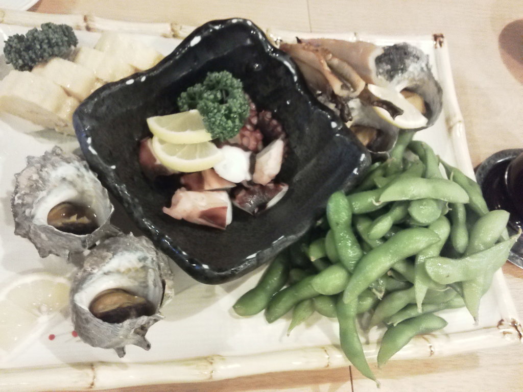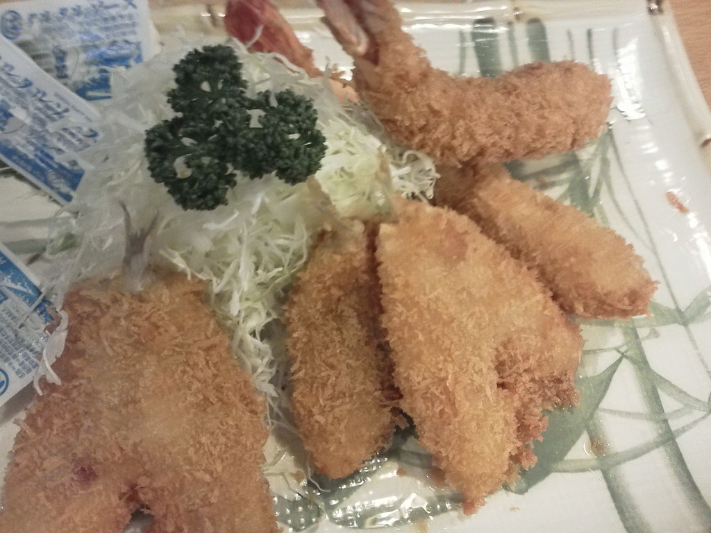 ~~ 2日連続の一杯会 ~~ ちょっとおしゃれな?感じのオープンな店舗にて付け出しは?・・・サザエパクリ!、生ビールで乾杯!大エビフライでちょっと知っている人は知っている○○は食堂 お、お、しまったwww 写真撮る前に、、、エ、エビフライに皆の手が、、、、、、 ごちそうさま^^最後にボジョレーヌーボを追加で乾杯!!!、、、お支払いは??? ・・・ (T_T) トホホ