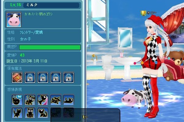 昨夜ミルクがLv16になった後(新技は「モー」大きな口を開けて鳴きます)、