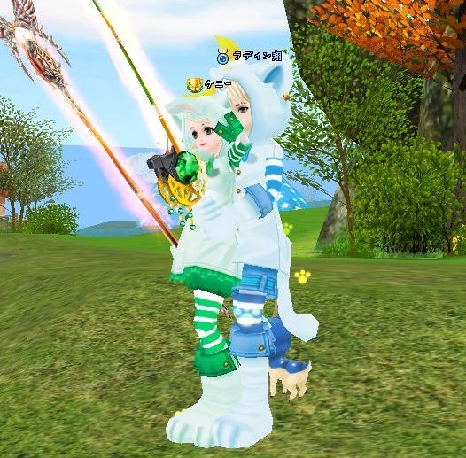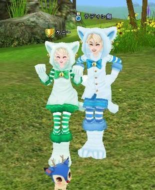 www 貼ってから気づいたけど、猫コスの足跡型のふわふわが 鼻風船のようにwww