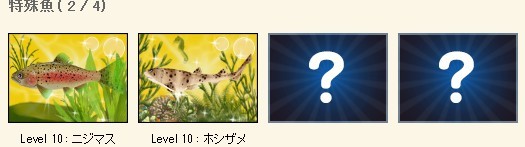 特殊魚のコレブはトラフグ、ニジマスとコンプしたのですが、