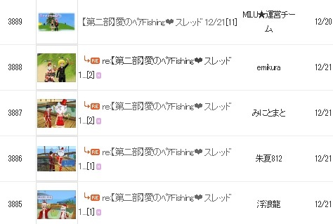 イベント掲示板を開き「愛のペアFishing❤」スレッドに、コメントにて参加表明を行ってください。