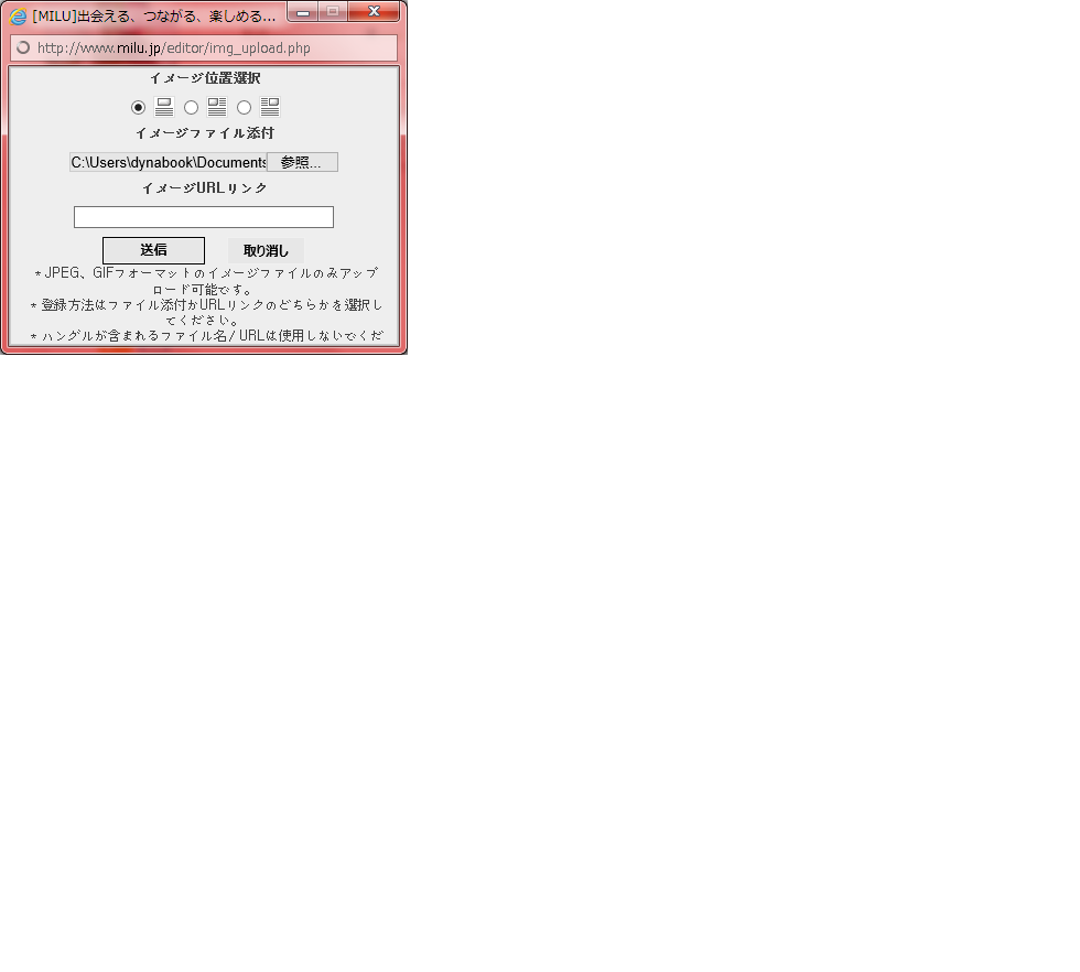 なんとか 「イメージアップロード」でSS貼れましたん