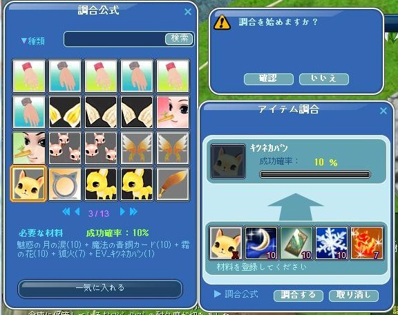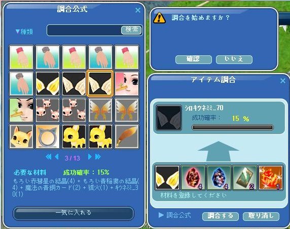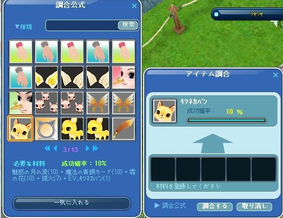同じようにキツネカバンとキツネミミLv50作成とか・・・