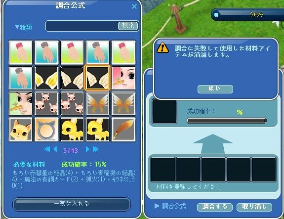 残ってた、マジカル調合、キツネとトナカイでマジカル調合して