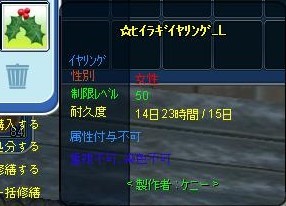 12/22 マジカルしたら☆ヒイラギイヤリング_L獲得。