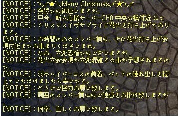 日付の変わる前に黄色文字アナウンスでサプライズ花火のお知らせ。