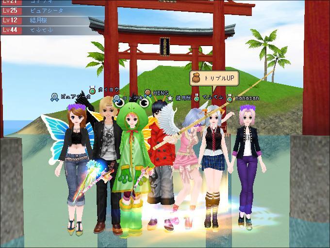 鳥居のそばがいいというリクエストでみんなで浮かんで並びました。