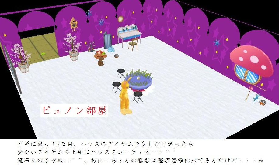 ピュノンさんの部屋は、きれいにまとまってますねー。 |