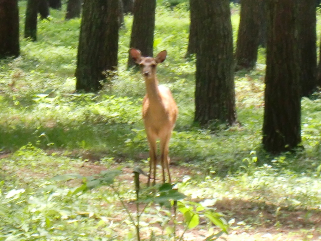 今日は朝からホテルの敷地を歩いていたら、鹿が居たのには驚きました。