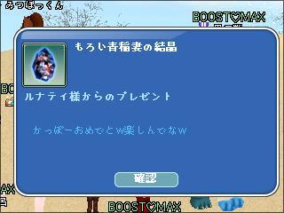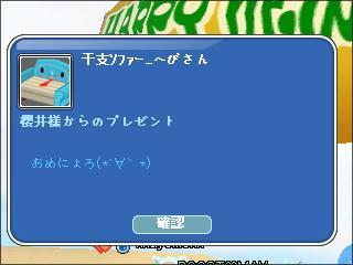 あとで、お祝い送るから、枠開けておいてねーん♪(≡ΦωΦ≡) |
