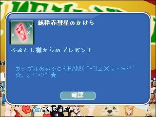 カポーおめでとー!!名前がなんとなく、つぼっていたww・・・古畑忍者風呂さんだったのね~お相手は・・・