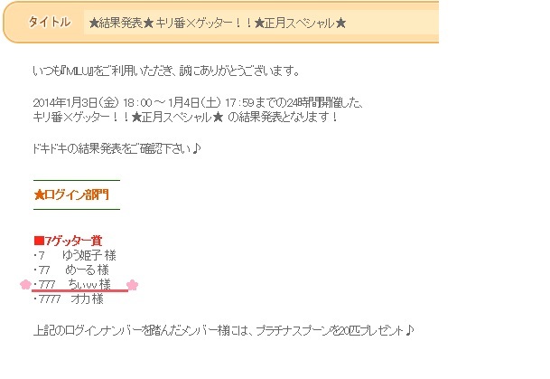 キリ番のイベントがあったみたいで、どれどれーっとみてみると・・・w