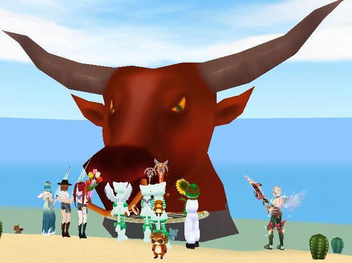 二時間ほど主にへらへら笑ってる牛を退治し、