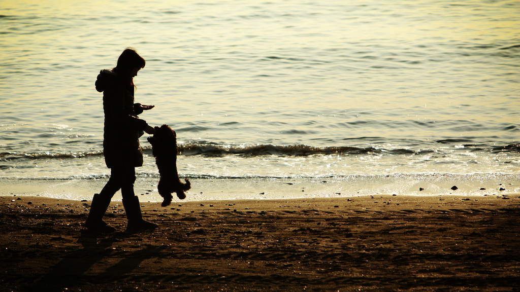 二枚目は海の優しい波といい犬と人との触れ合いの優しさが
