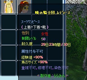 Lv40のセットアイテムの服と頭は作れなかったのですが、
