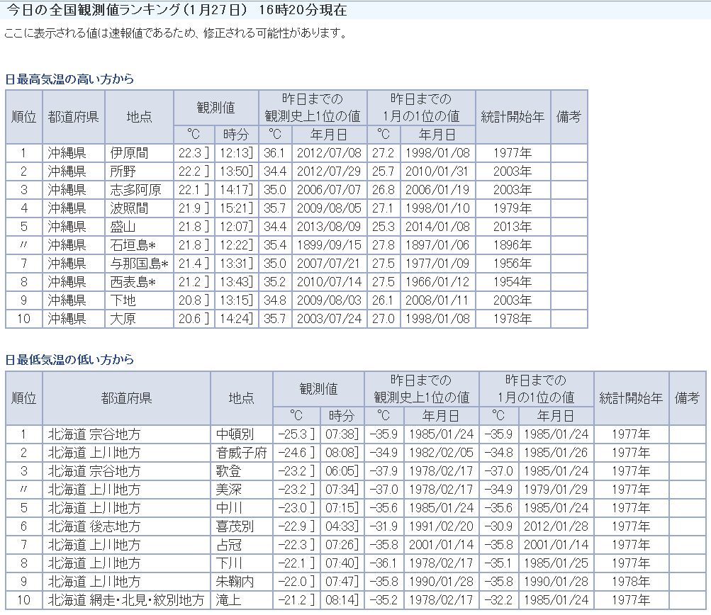 あはw最低は全部北海道だww確かに今朝は寒かったよ~
