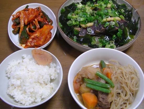肉じゃが・カツオのタタキ・キムチです