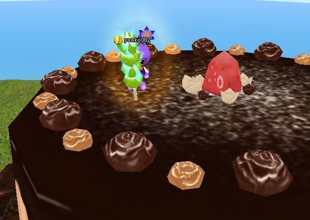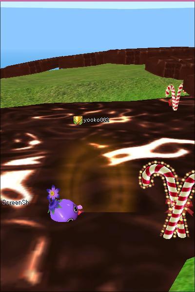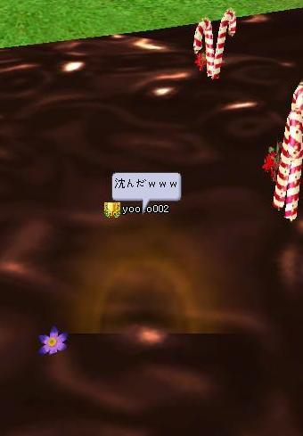滑ってチョコの池に落ちた!