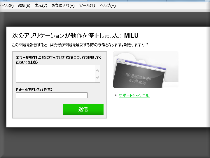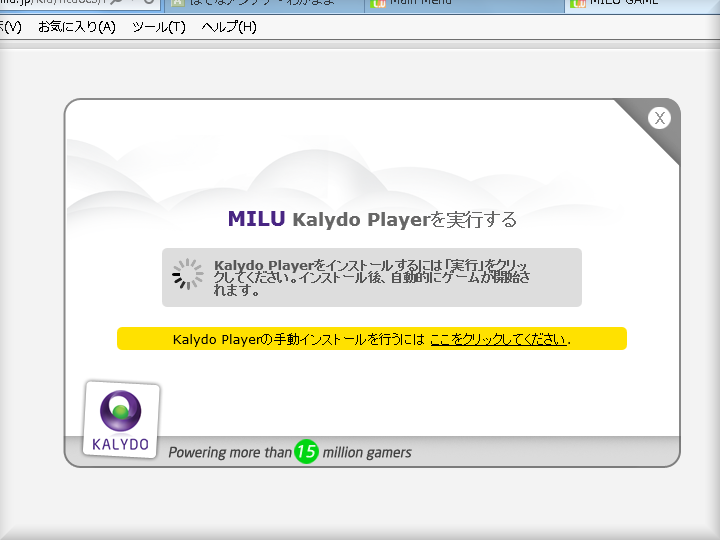 ・・・しかし、上の黒いところの『読込中MILU』がずっと0%のまま・・・ イヤな予感がする