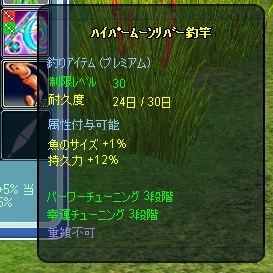 材料を集めるにしても今僕が使っているムーンリバー釣竿はプレミアムなので、1回属性を強化するのに青銅カード15枚、赤青のかけらそれぞれ24個づつ必要。
