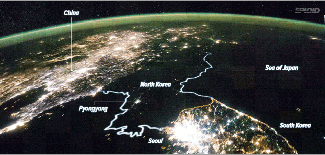 実際はの国境とか海岸線とか、こんな感じ。光ってるの平壌くらいだもんな。省エネとしても、真似できんなぁ・・・