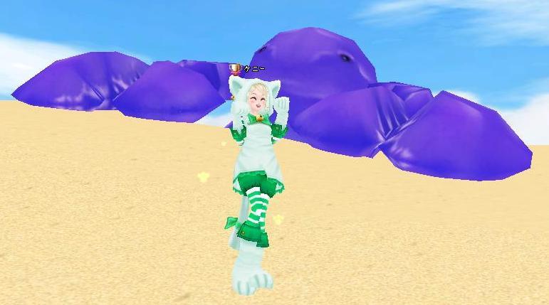 ピンクと紫は砂漠に、オレンジのは鳥居の奥の島で目撃しましたが青も黒もどこか