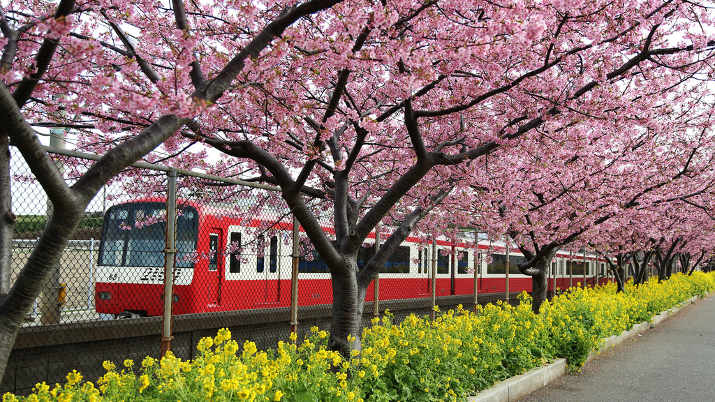 | すっごい!満開ー!!!電車とのコラボもいいですねー^^ |