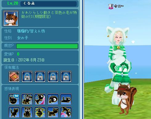 晩御飯をあげるとさっそくくるみがLv20になり