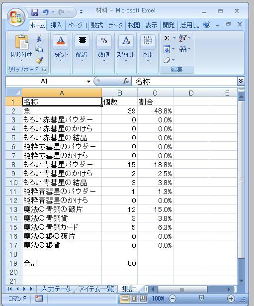 材料釣りの集計でも取ろうかなぁ。って、ずいぶん前に途中まで作ってたのですが・・・