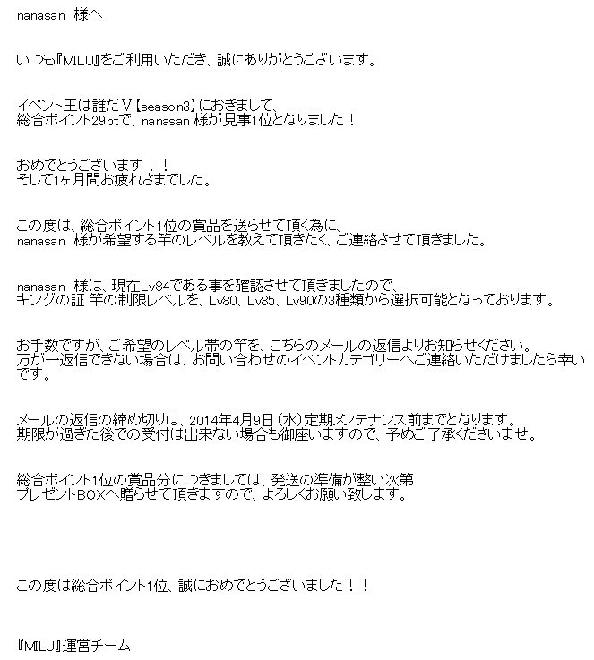 運営さんからメールが届くんですねw |