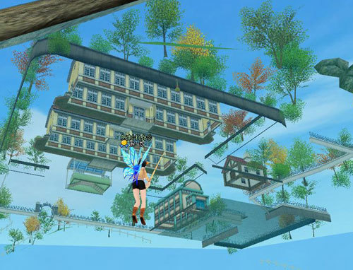 頭上にウキと学校がwww