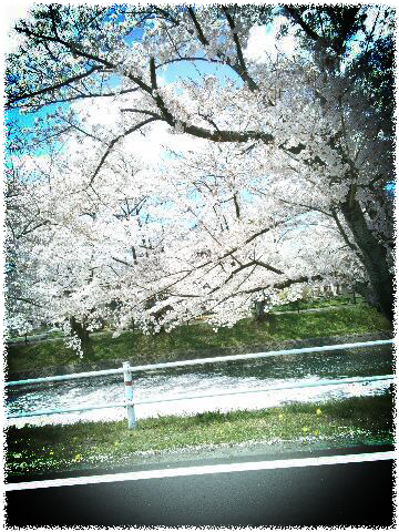 通勤で走る道路と並行した川沿いが、延々桜並木です
