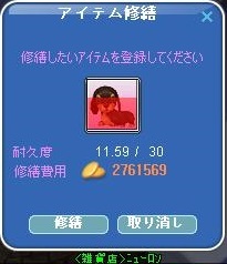 ( ゚д゚)ハッ! 私もアタマ装備修繕忘れてた・・・(゚∀゚ ;)タラー