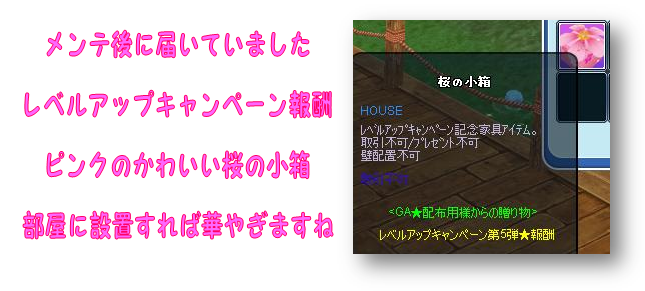前回のレベルUPキャンペーン達成賞品、まだ設置してませんけど何個