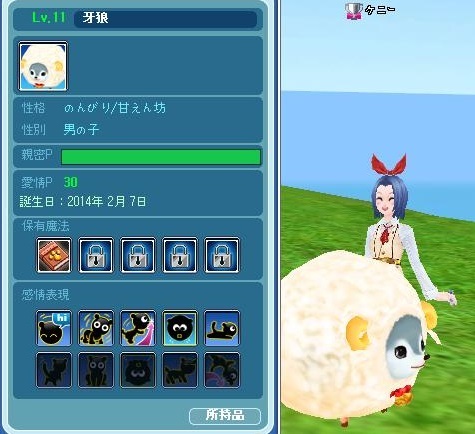 夜ごはんをあげると牙狼がLv11になりました。特に変化はなし。まんまるもこもこ