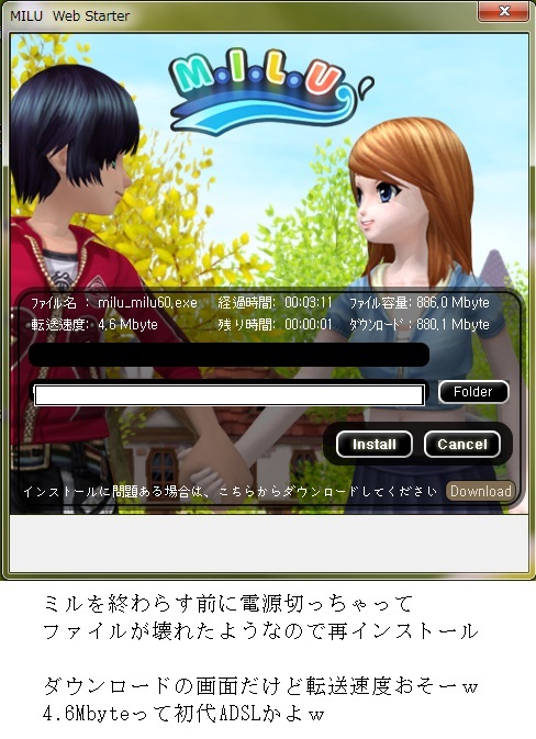 MILUにIN出来なくて再インストールする前に