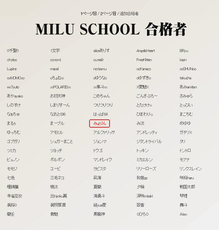 今日のメンテ明けでMILU SCHOOLの合格発表がありました^^