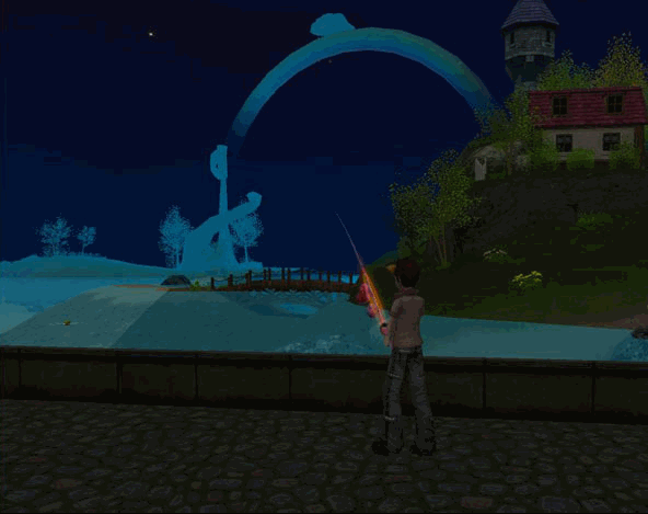 | 釣りの途中に何を見つけたんだー!? |