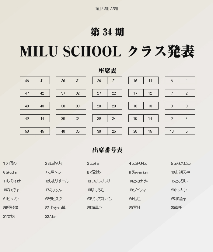 SHUNさん出席番号4番、私17番^^ よろしくおねがいします^^