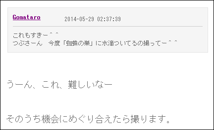 水滴に反射してつぶさんの顔が映ってる! トカイッテミタダケ