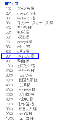 なんだか、キリバンゲッターとか言うイベントで入賞していたようです^^