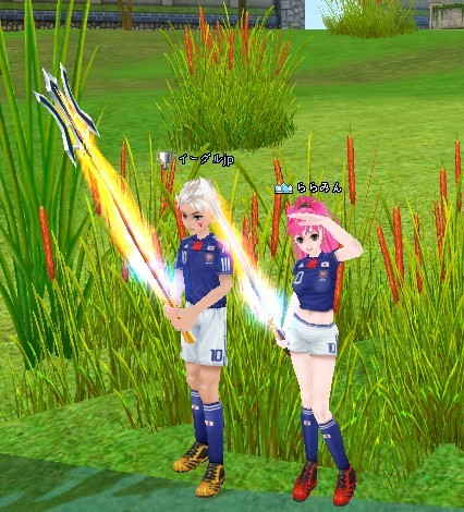 運営にいただいたサッカー応援グッズや新しいコスで、お揃いで釣ってみました。