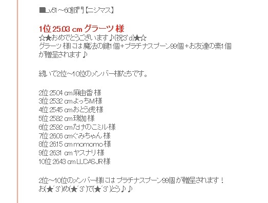 3位ヽ(*´∀`)ノオメデト─ッ♪